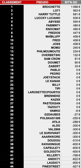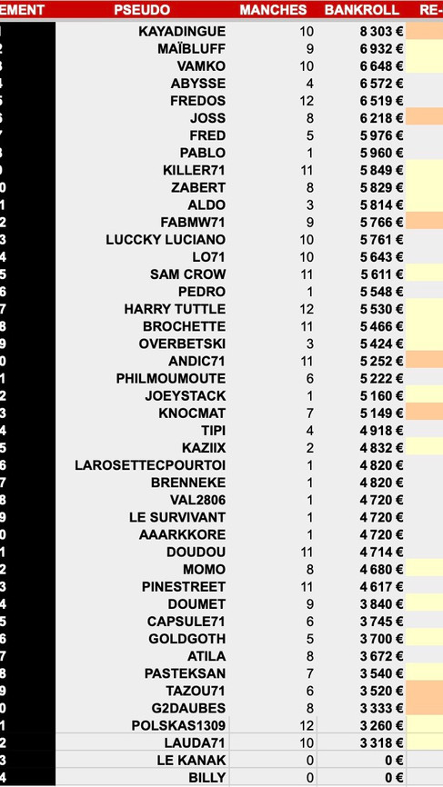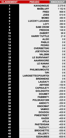 Un petit point donc après 12 manches disputées sur les 30 prévues cette année. Kayadingue est en tête du général devant Maïbluff et Vamko, qui eux ont dans le retro, Abysse, Fredos et Joss.